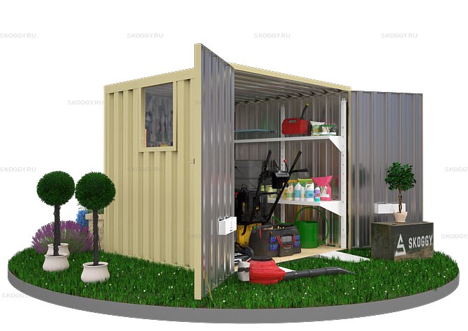 Контейнер для хранения SKOGGY – это сборная модульная конструкция, предназначенная для размещения оборудования, инвентаря, бытовых вещей. Наличие разнообразных систем хранения, состоящих из полок, стеллажей и ящиков обеспечивает удобное хранение содержимого в контейнере в упаковке или без нее. Изделие может быть установлено на даче, стройплощадке или на промышленном объекте, так как монтаж металлоконструкции осуществляется на фундаментную плиту, процесс не занимает много времени.