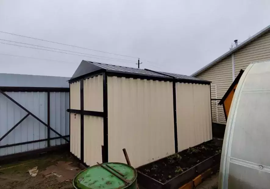 Хозблок герметичен, но имеет вентиляцию. Это реализовано за счет гофрированной структуры профлиста, которая позволяет потокам воздуха циркулировать внутри, не нарушая целостности хранящихся там вещей.