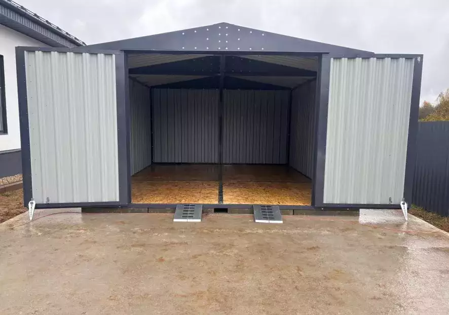 Гараж с двускатной крышей – идеальный вариант для дачи или загородного дома. Установите его в два счета и наслаждайтесь комфортным использованием!