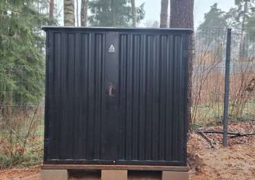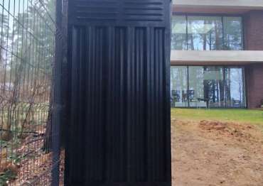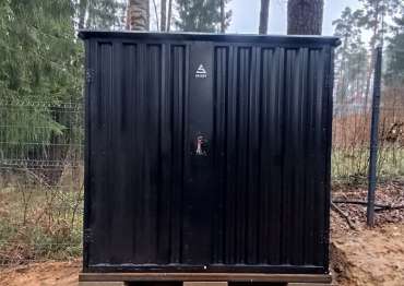 Нами была изготовлена стандартная конструкция дровницы размером 1,03 х 2,22 х 2,1 м в классическом черном цвете RAL 9005.