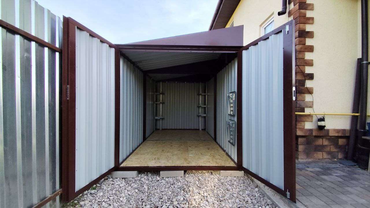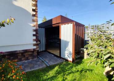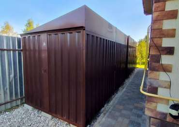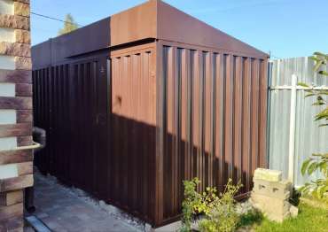 Проект: 4-метровый и 5-метровый хозблоки для хранения квадроцикла и садового инвентаря в шоколадно-коричневом цвете.