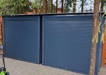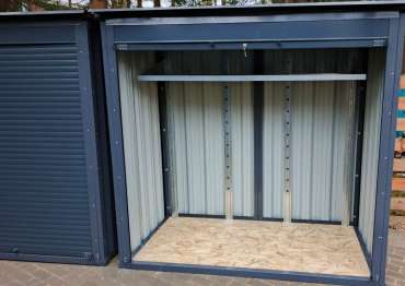 Проект: два роллетный шкафа 1,03 х 2,22 х 2,1 м для хранения садовой техники и инвентаря в графитовом цвете.