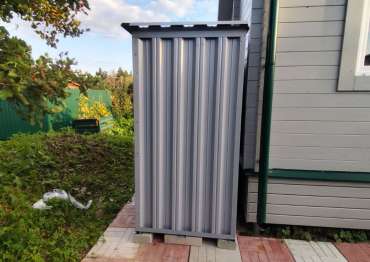 Нами были изготовлены две конструкции дровницы размером 1,03 х 2,22 х 2,1 м в сигнальном сером цвете RAL 7004. Такая расцветка была выбрана, чтобы постройки гармонировали по цвету с жилым домом на участке.