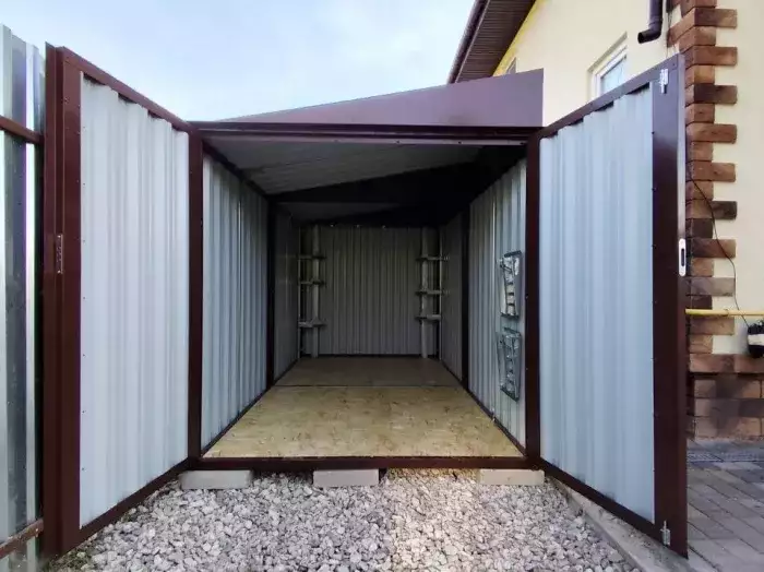 Проект: гараж 6 х 4 х 2,69 м для хранения автомобиля в цинковом цвете.