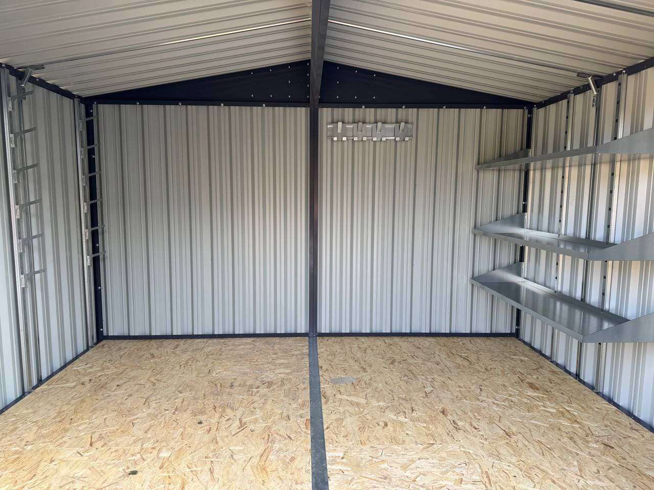 Проект: широкий 3-метровый гараж для хранения мототехники и хозяйственных нужд в графитовом цвете.
