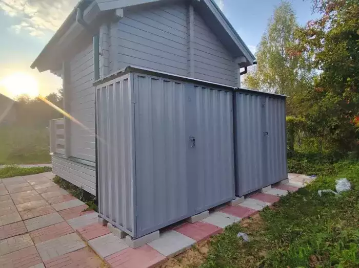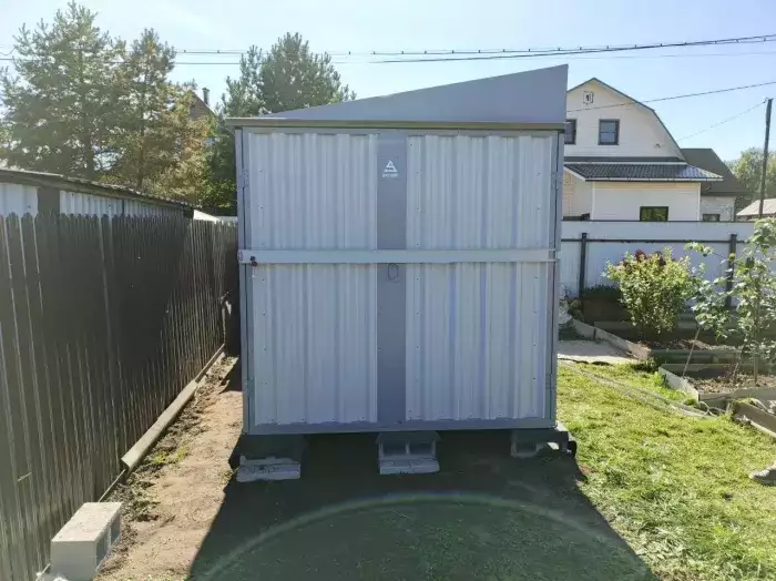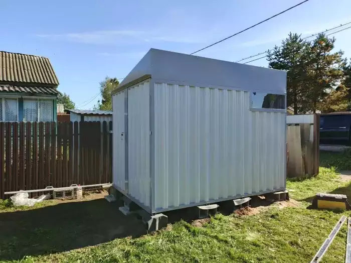Доставляли хозблок на участок заказчика в разобранном виде. Нашими специалистами предоставлялись услуги по установке бетонных блоков и сборке изделия.