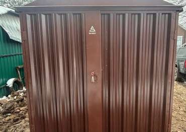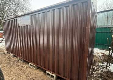 Проект: 5-метровый хозблок для хранения хозяйственных принадлежностей в шоколадно-коричневом цвете.
