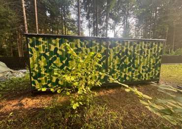 Проект: 6-метровый хозблок с рольставнями для хранения хозяйственных вещей в камуфляжной расцветкке.