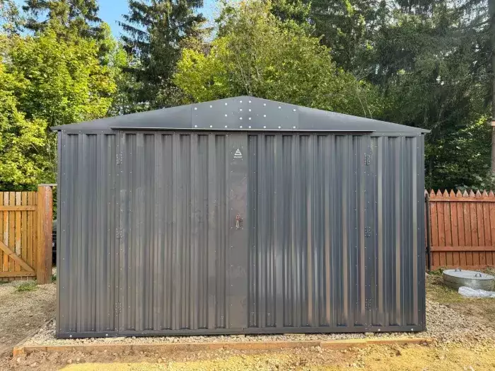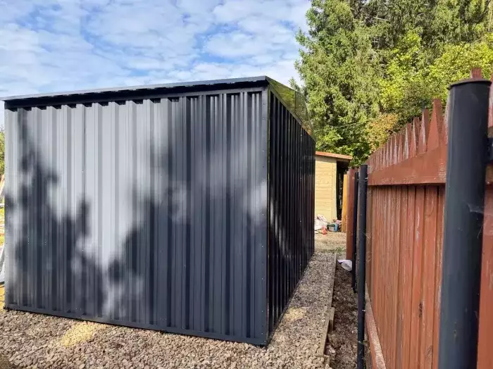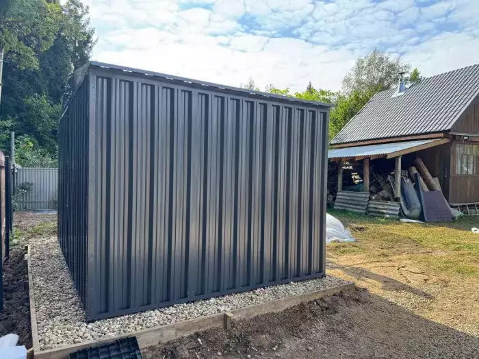 Проект: мини хозблок для хранения инвентаря и хозяйственных принадлежностей в графитовом цвете.