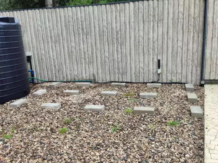 Доставляли постройку на участок заказчицы манипулятором в разобранном виде. Установка производилась на бетонные блоки.