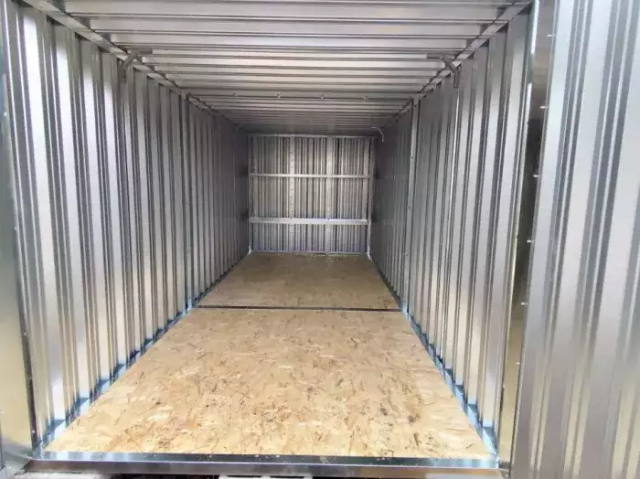 Нами была изготовлена конструкция индивидуальных размеров 6 х 1,3 х 2,3 м с двумя перегородками и тремя входными дверями шириной 1 м по боковой стороне в блестящем цинковом цвете. Каждый отсек постройки получился шириной по 2 метра.