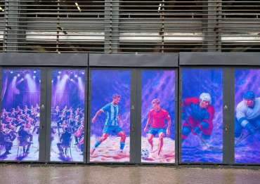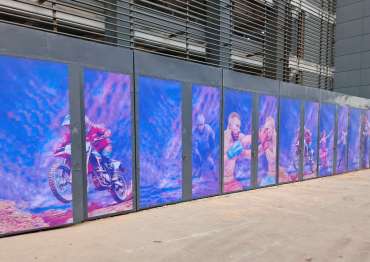 Нами было изготовлено 19 конструкций индивидуальных размеров с односкатными крышами и боковыми воротными группами в строгом графитовом цвете с нанесением ярких и красочных принтов.