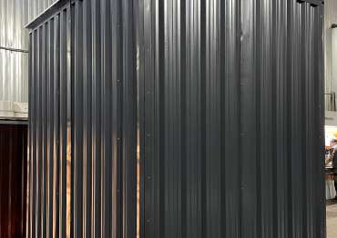 Этот проект был реализован в стильном графитовом цвете с нанесением индивидуального принта, но у нас есть возможность окрашивания наших изделий и в другие стандартные цвета палитры RAL, нестандартные - по индивидуальному запросу. А также есть возможность нанесения на стены конструкции принта с вашим любимым изображением, тем самым сделав проект уникальным. Обязательно попробуйте, не пожалеете :)