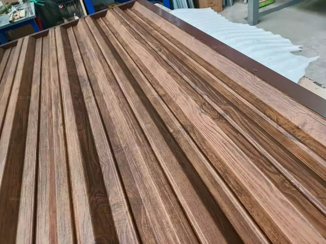 Цвет этого контейнера сделан «под дерево», но у нас можно выбрать любой оттенок из стандартной палитры RAL, нестандартные и индивидуальные принты – по запросу.