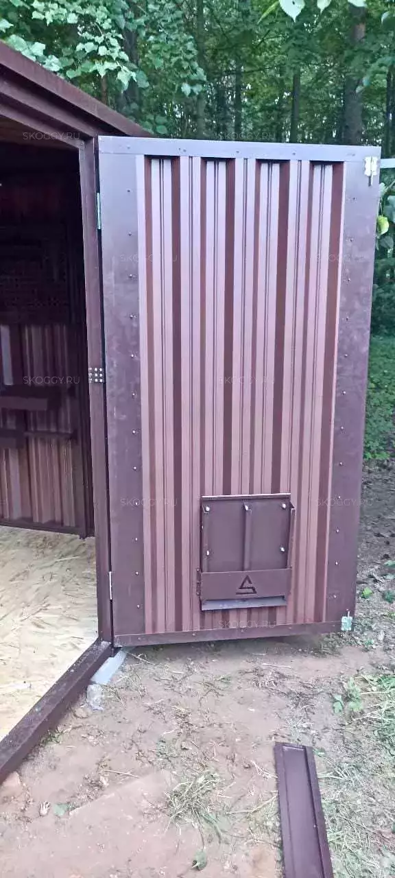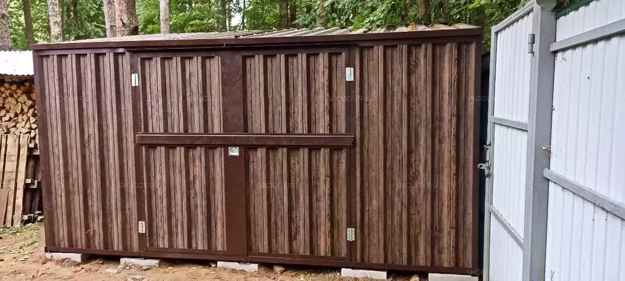 В результате переговоров пришли к следующему: 4-метровый блок-контейнер с односкатной крышей и боковым входом. Так как вокруг загородного участка клиента расположен лес, мы предложили ему сделать дизайн в лесной тематике. Мы показали наш выставочный экземпляр, Глебу Вячеславовичу он понравился, но попросил оттенок потемнее. Остановились на оттенке Наив Марун.