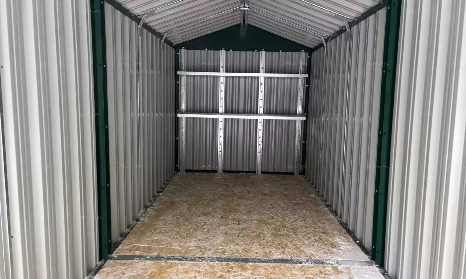 Дополнительно шкаф оборудован полом из OSB и удобными полками для хранения.