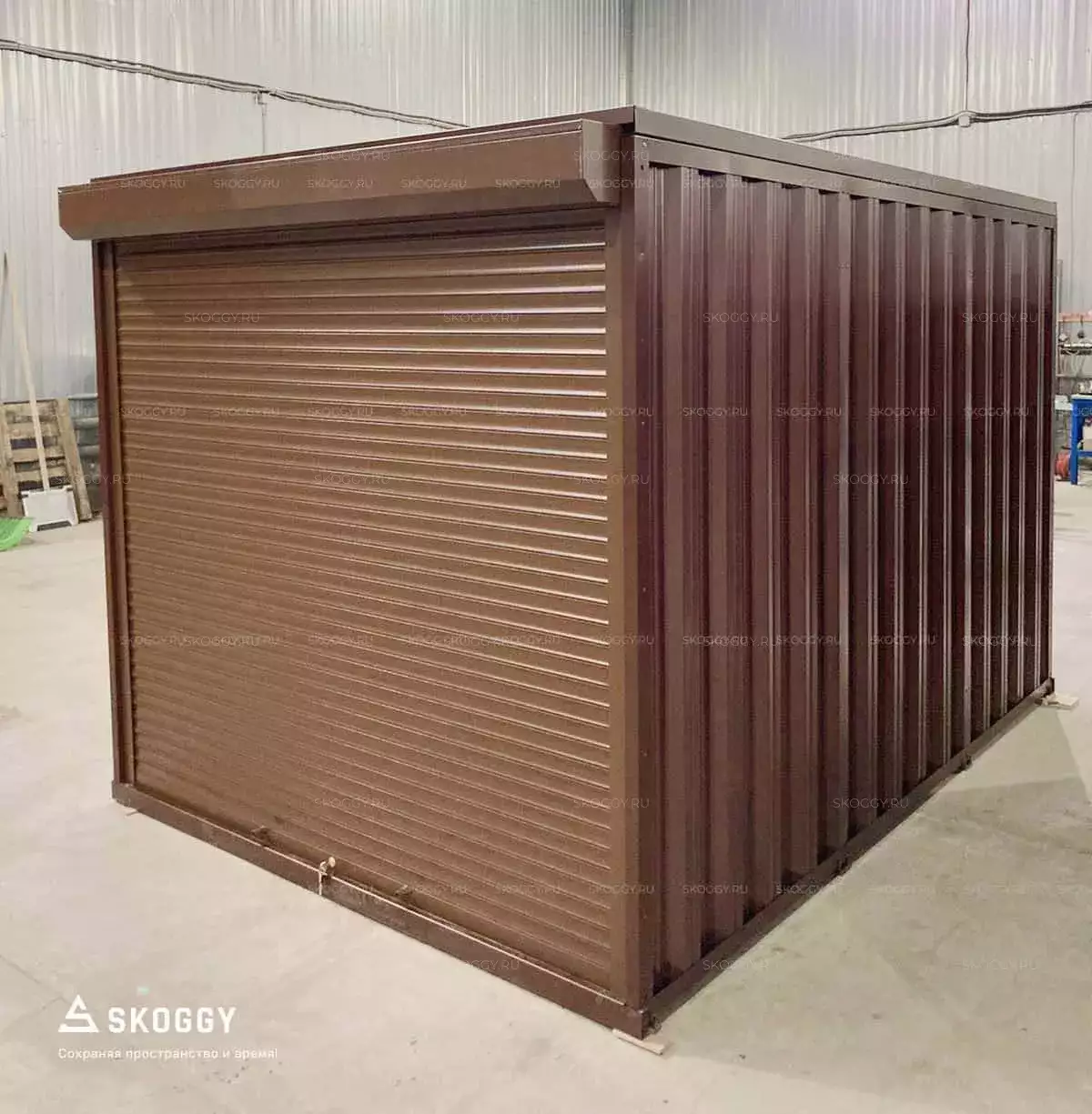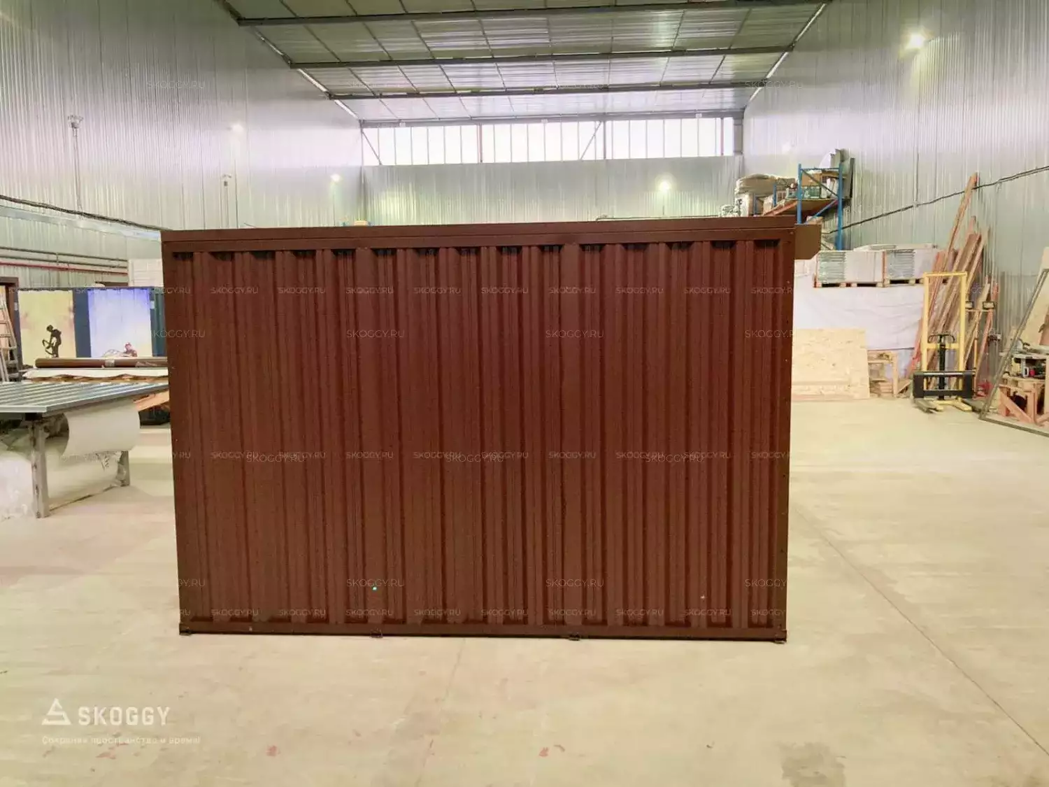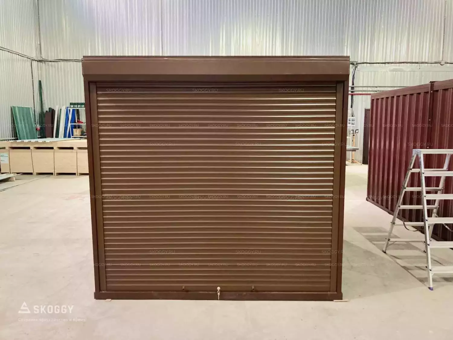 Нашим решением стал стандартный блок-контейнер длиной 3 метра в коричневом оттенке. Он легко выдерживает нагрузку до 2,5 тонн. Блок-контейнер устойчив к воздействиям окружающей среды, ему не страшны порывы ветра и сильные дожди. Цикл сборки и разборки контейнера не менее 100 раз, его легко перевезти своими силами на малогабаритном транспорте.