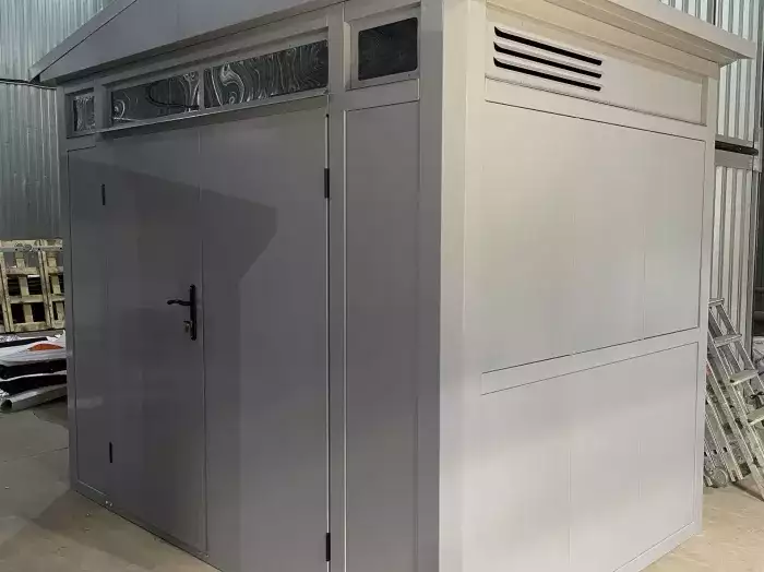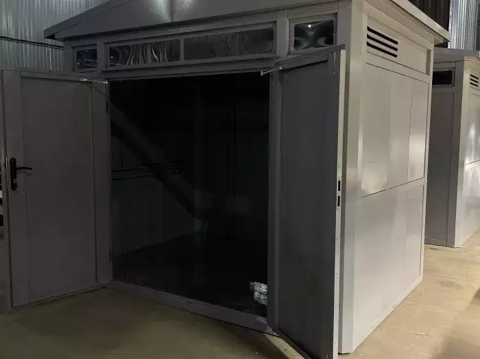 Проект: 3-метровый секционный хозблок для хранения садовой техники и инвентаря в комбинированной расцветке.