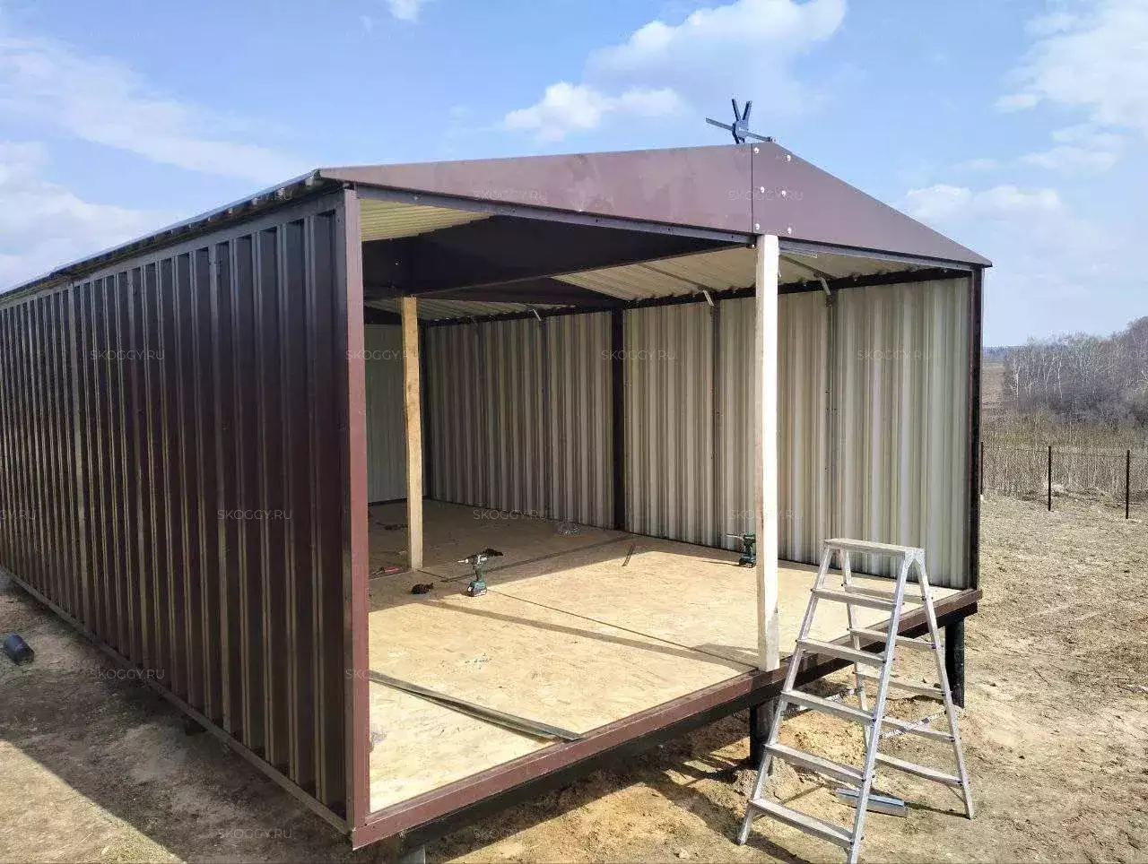 Этот хозблок по желанию заказчика окрасили в цвет RAL 8017. Получился очень эстетичный шоколадный помощник в хозяйстве Николая.