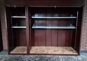 Проект: шкаф 3,2 х 2,3 х 0,8 м для хранения садового инветаря в шоколадно-коричневом цвете.