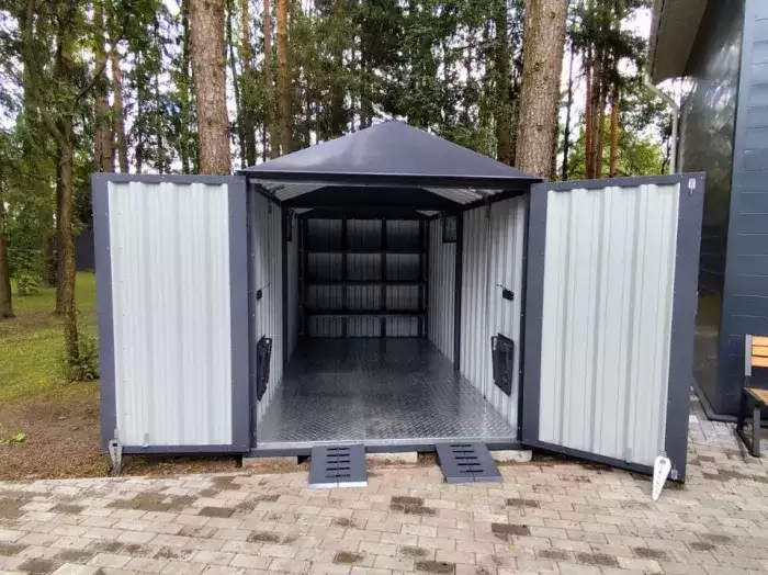 Проект: уличный шкаф 0,9 х 2,35 х 2,35 м для хранения автомобильных колес в графитовом цвете.