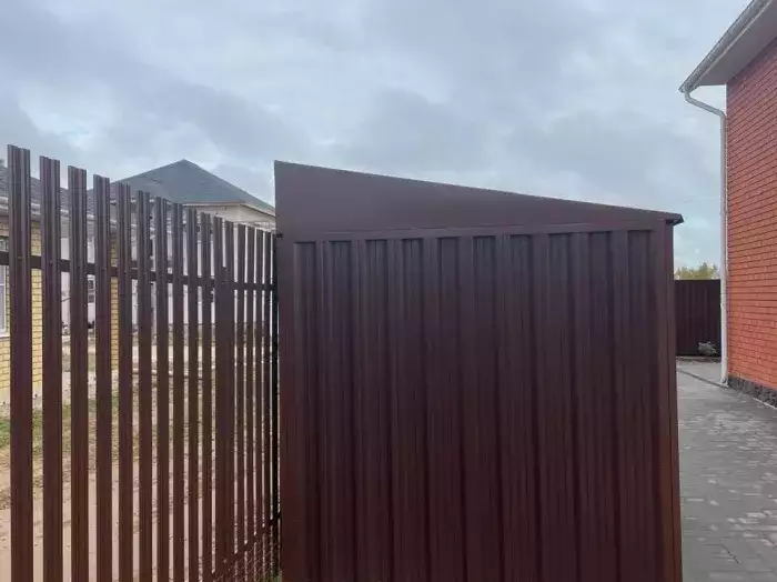 Этот проект реализован в популярном шоколадно-коричневом цвете RAL 8017, но у нас есть возможность окрашивания наших изделий и в другие стандартные цвета палитры RAL, нестандартные - по индивидуальному запросу.