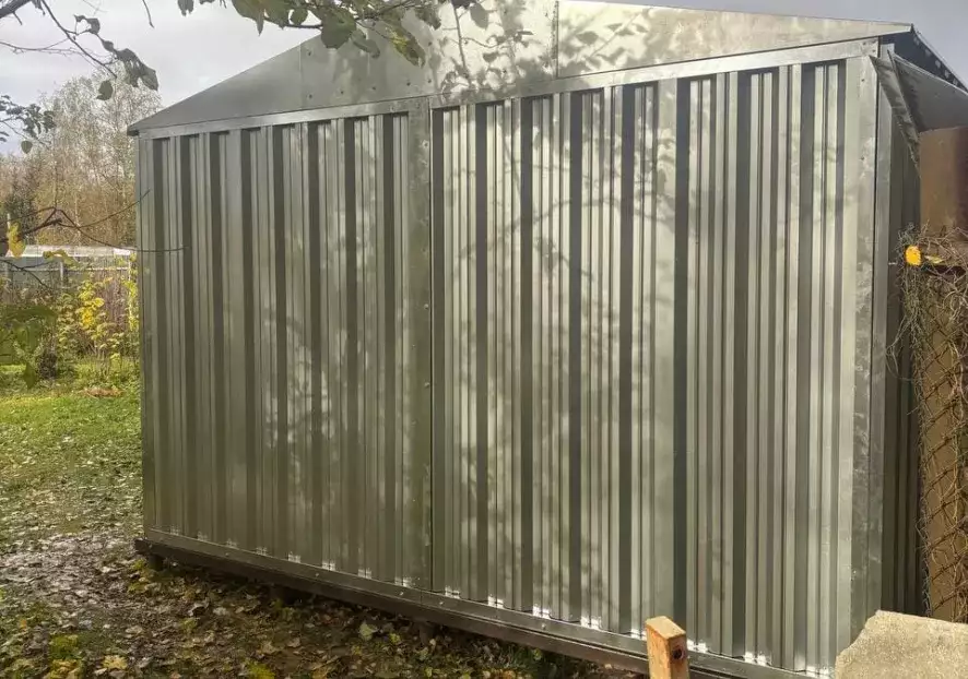 Металлический контейнер сборно-разборного типа SKOGGY для хранения техники, оборудования, инвентаря, старых вещей. Используйте контейнер на даче, на загородном участке, на стройке, на территории государственного учреждения и т.д.