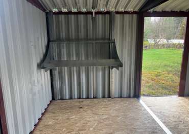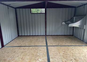 Дополнительно хозблок оборудован световым окном размером 90 х 30 см, системой хранения шин и дополнительной входной дверью шириной 1 м.