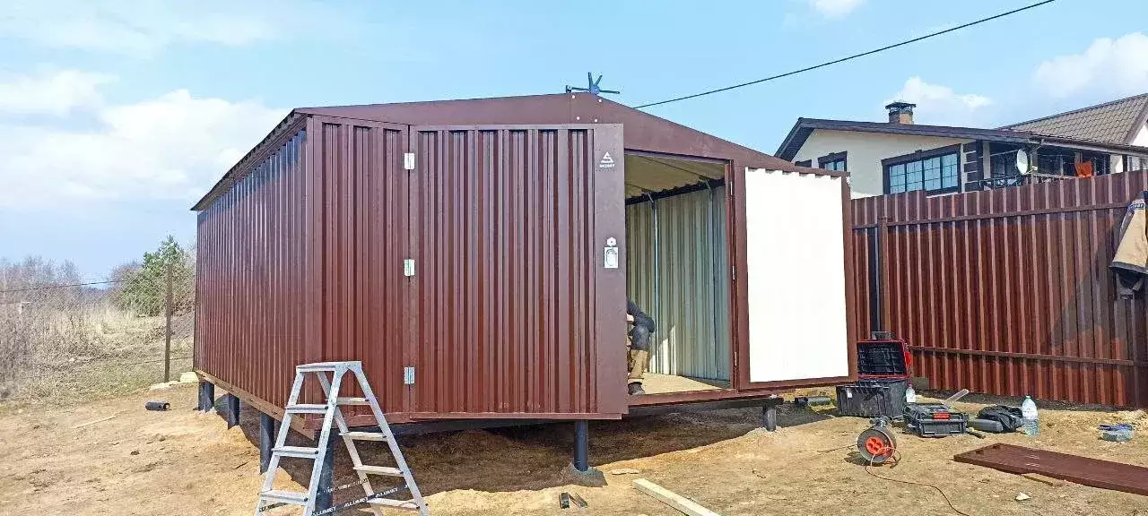 Этот хозблок по желанию заказчика окрасили в цвет RAL 8017. Получился очень эстетичный шоколадный помощник в хозяйстве Николая.