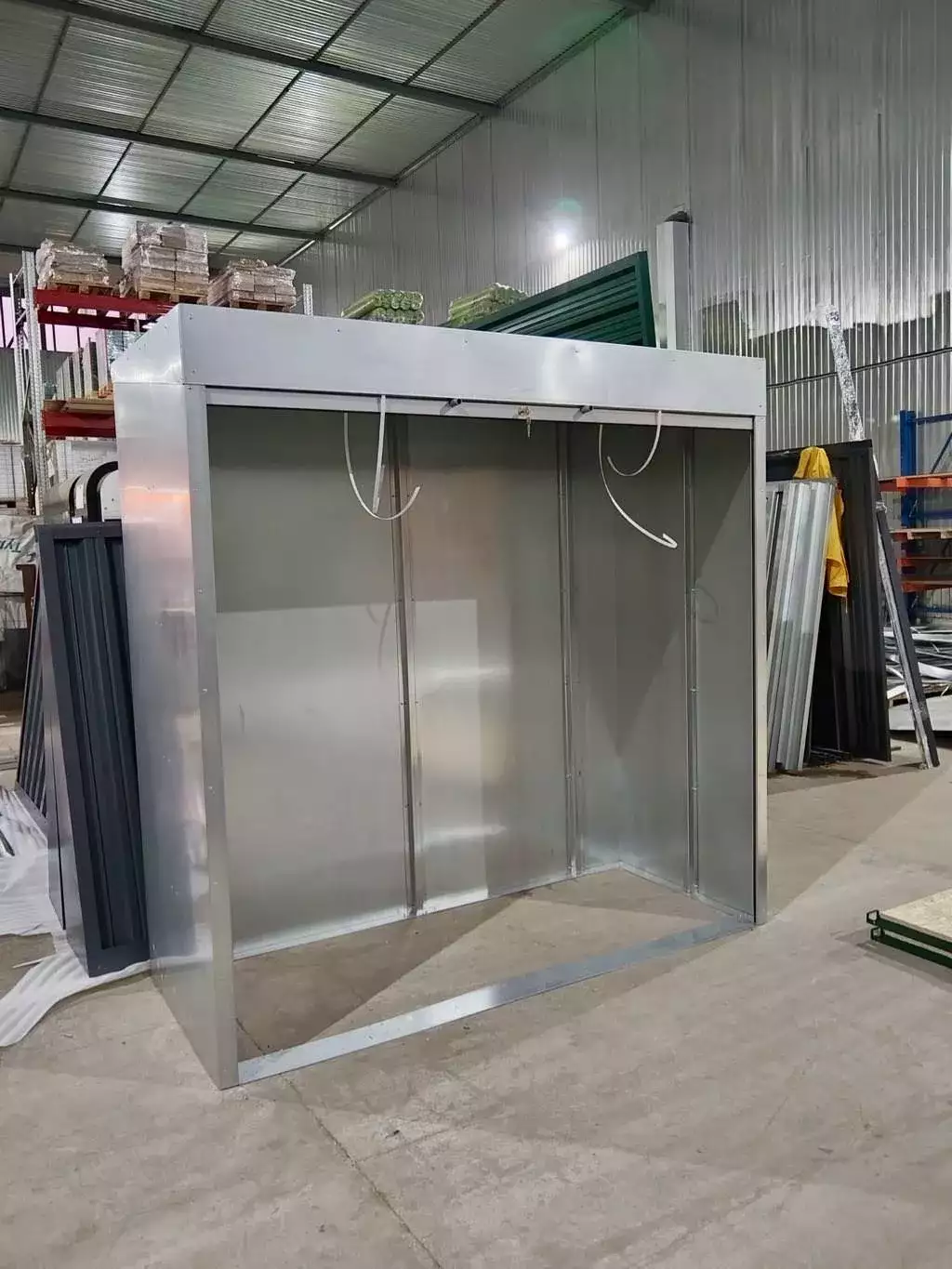Нами была изготовлена конструкция стандартных размеров 2,1 х 2,1 х 0,9 м.
