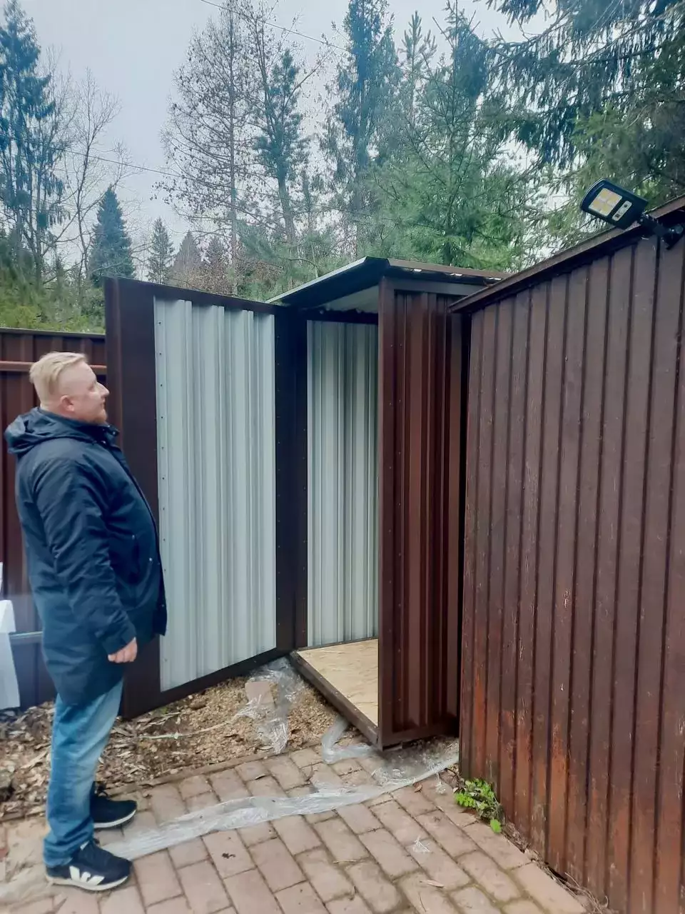 В сентябре к нам обратился клиент Илья из города Лобня с идеей узкого контейнера для установки между гаражом и забором.